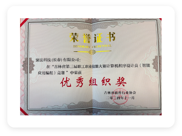 2024年11月,荣获吉林省第三届职工职业技能大赛计算机程序设计员优秀组织奖。